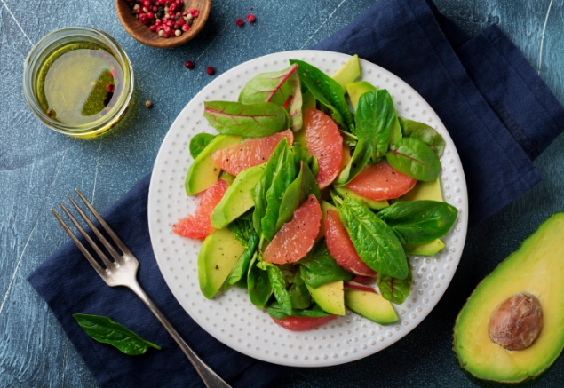 Coloca en un bol los aguacates, las naranjas y la cebolla en juliana.